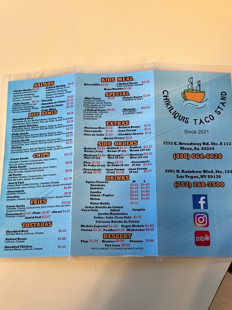 Welcome to Chikiliquis Taco Stand, where authenticity meets flavor in the heart of Las Vegas! This Latinx-owned, women-owned gem offers a cozy yet vibrant atmosphere, catering to both casual diners and families with its welcoming outdoor seating and private dining options.